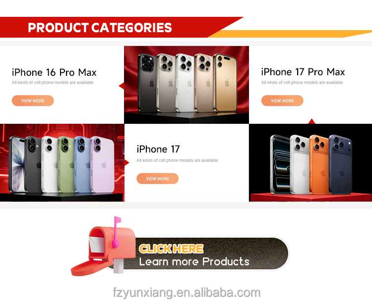 Wholesale Iphone 17 100% Original Unlocked Global Used Mobile Phone 5G 6.3 Inch Cell Smart Iphone17 256GB 512GB